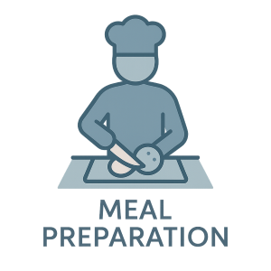 Our caregivers provide nutritious, home-style meal preparation tailored to each client’s tastes and dietary needs. From planning menus and preparing ingredients to cooking and serving meals, we ensure clients enjoy fresh, satisfying dishes every day. We also promote safe eating habits and can offer companionship during mealtimes, making the experience both healthy and enjoyable.